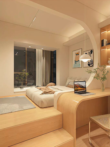 Một thiết kế hợp lý giúp tối ưu công năng và diện tích, đặc biệt với những không gian nhỏ. Việc sắp xếp nội thất khoa học như giường, tủ, bàn làm việc hay đèn chiếu sáng giúp căn phòng gọn gàng, tiện nghi hơn. Ngoài ra, bố trí thêm khu vực đọc sách, trang điểm hoặc lưu trữ đồ đạc hợp lý cũng mang lại sự thoải mái và thuận tiện trong sinh hoạt hằng ngày.