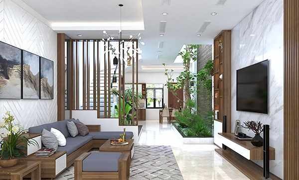 2.2. Phòng khách với nội thất bằng gỗ tự nhiên