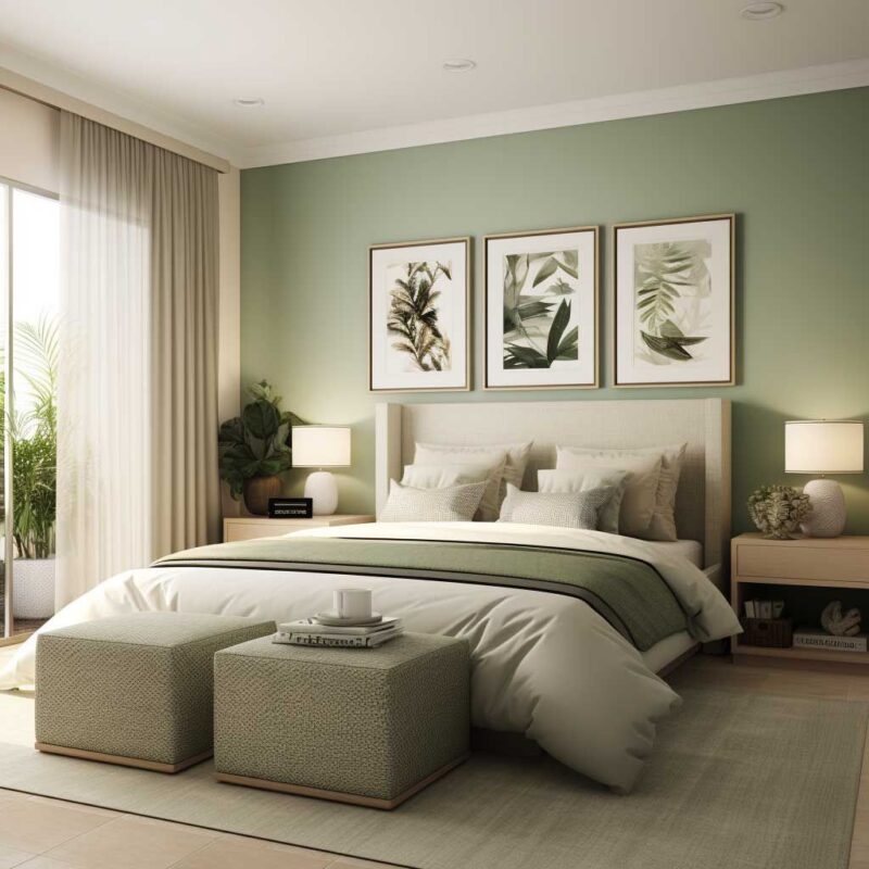 Một ý tưởng thiết kế độc đáo đó chính là sử dụng tone màu xanh lá. Có thể sơn bức tường trong phòng hoặc bố trí nội thất theo tone màu này sẽ giúp bạn cảm nhận được sự mát mẻ và thoáng đãng. Màu xanh lá khiến cho căn phòng trở nên bắt mắt hơn và tràn đầy năng lượng và vui tươi mỗi ngày.