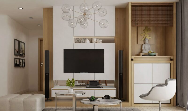 Phong cách này là sự kết hợp giữa nét truyền thống, trang nghiêm của khu vực thờ cũng và sự ấm cúng, thân thiện của phòng khách. Thiết kế sử dụng các vật liệu gỗ công nghiệp cao cấp với ánh sáng dịu nhẹ và các mảng màu trầm ấm tạo nên một không gian tĩnh. lặng tôn kính nhưng vẫn hoà hợp gần gũi với sinh hoạt hằng ngày.
