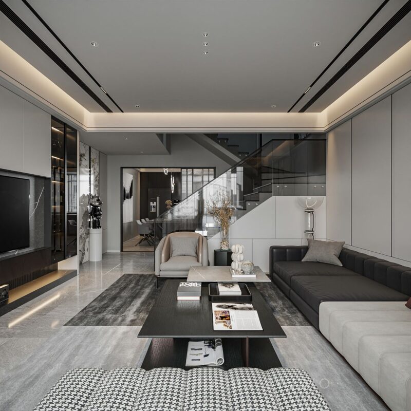 Nếu sự tối giản tập trung chi tiết vào các đường nét thì phòng khách theo phong cách hiện đại tập trung vào các vật liệu. Phong cách này vẫn giữ được sự tối giản, hiện đại nhưng nâng tầm bằng cách sử dụng các vật liệu cao cấp như giúp phòng khách thêm phần sang trọng, đẳng cấp. Mẫu thiết kế này luôn có sự tinh xảo, thể hiện đẳng cấp và sự xa hoa, tinh tế của gia chủ. Đây là phong cách thiết kế hàng đầu dành cho các biệt thự hoặc penthouse.
