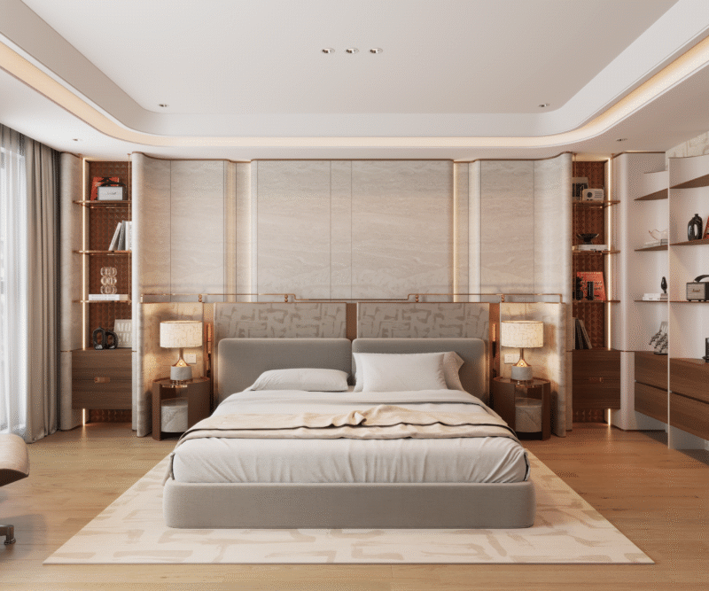 Với những người trẻ đang bắt đầu xây dựng tổ ấm, việc sở hữu một phòng ngủ s ang trọng không nhất thiết phải đi đôi với chi phí đắt đỏ mà nằm ở tư duy tối giản có chọn lọc. Thay vì đầu tư vào những vật liệu xa xỉ, mẫu thiết kế này tập trung vào các dòng gỗ công nghiệp có bề mặt mịn màng, kết hợp cùng các khối hình học phẳng để giảm thiểu chi phí gia công và nhân công lắp đặt.