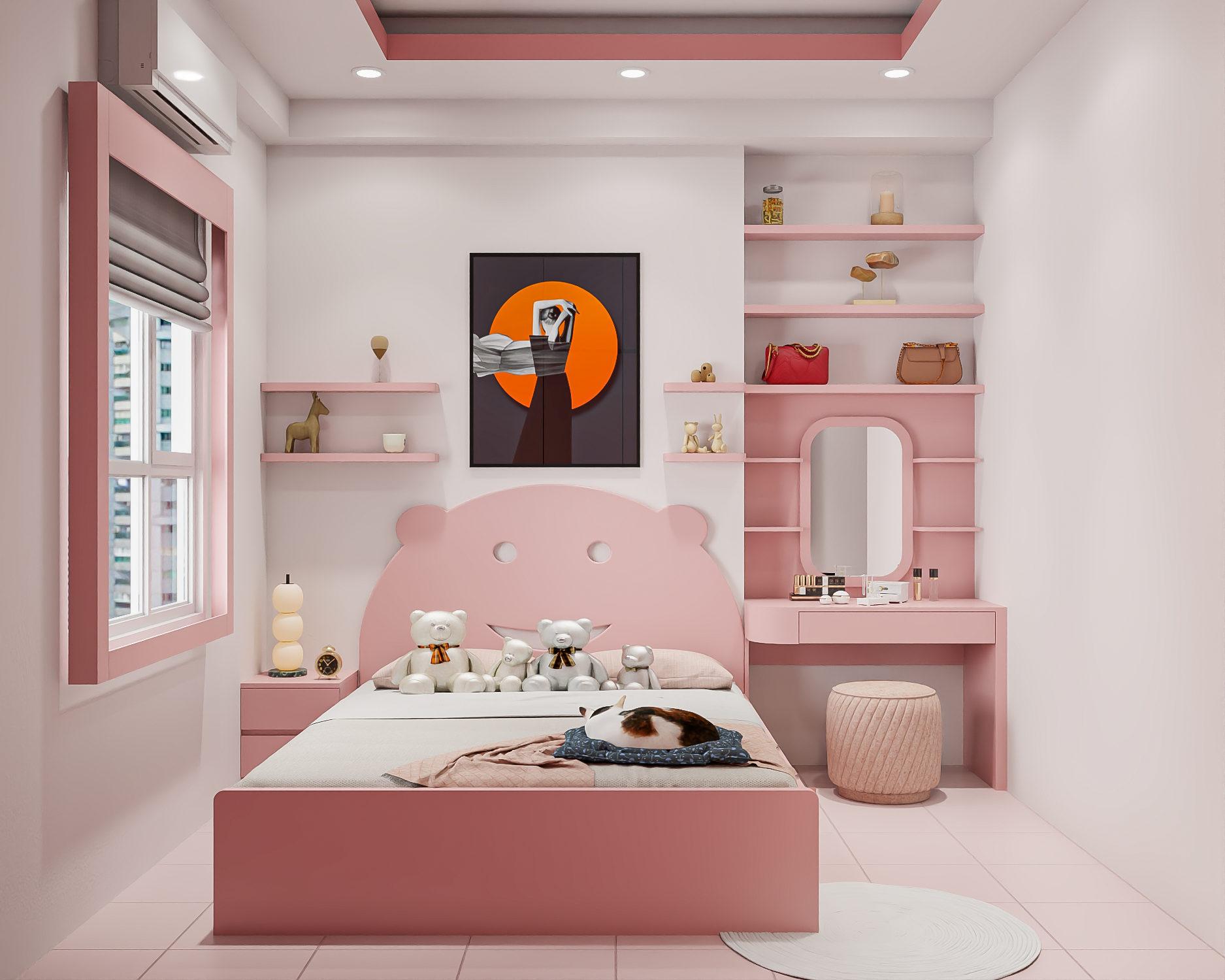 Tổng thể, thiết kế nội thất này mang phong cách dễ thương, phù hợp cho các bé gái hoặc các bạn trẻ yêu thích sự ngọt ngào, nhẹ nhàng, kết hợp giữa tính tiện ích và thẩm mỹ cao để tạo ra một không gian nghỉ ngơi, thư giãn lý tưởng.