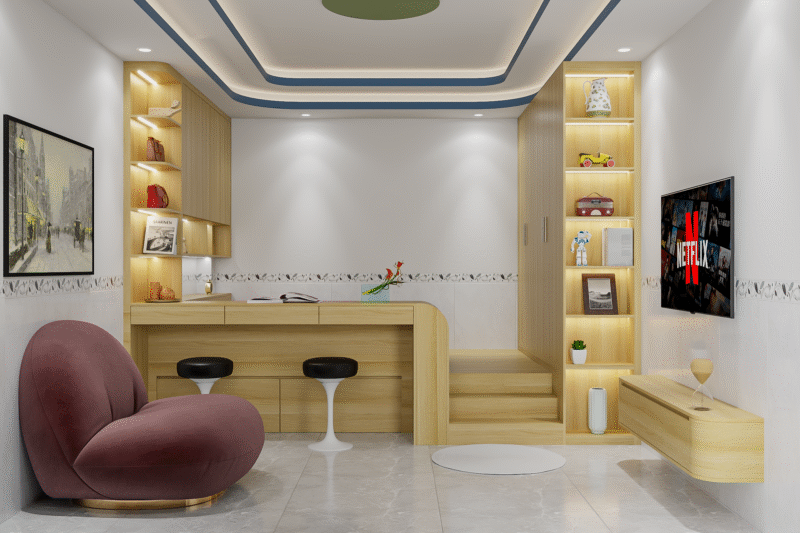 - Đây là phòng ngủ được thiết kế hiện đại, đa năng, thông minh tận dụng tối đa không gian hẹp