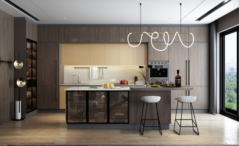 Tủ bếp được thiết kế hiện đại, sang trọng và tinh tế trong từng chi tiết