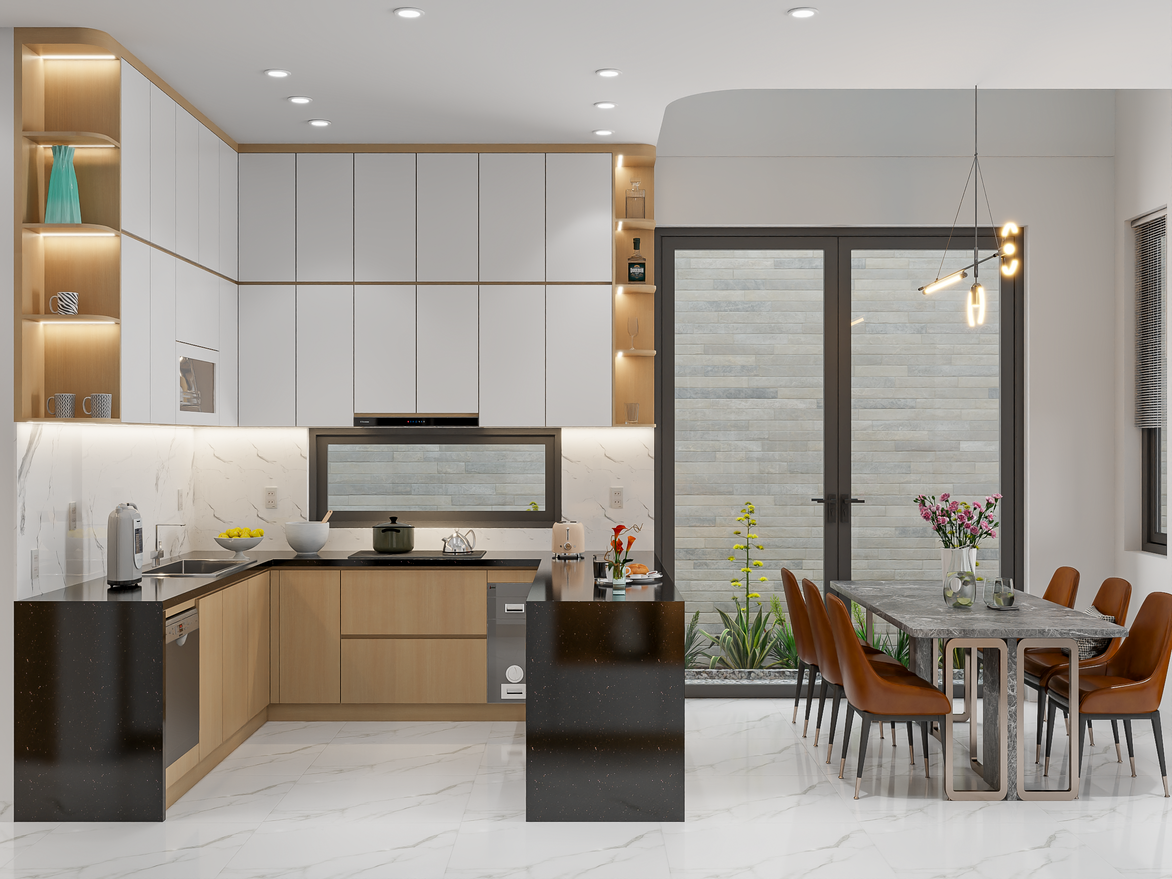 - Phòng bếp được thiết kế theo phong cách hiện đại, tối giản và sang trọng
