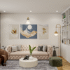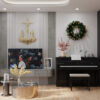 Phòng khách được thiết kế hiện đại, mang đến một không gian sống tiện nghi