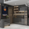 - Kệ trang trí âm tường – Tăng không gian trưng bày: Bên phải phòng khách là hệ kệ âm tường kết hợp đèn LED, vừa mang tính trang trí vừa tối ưu công năng lưu trữ.