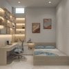 - Thiết kế phòng ngủ này là minh chứng cho sự tinh tế trong việc sử dụng màu sắc trung tính và nội thất tích hợp. Đây là mẫu phòng ngủ lý tưởng cho những ai yêu thích sự đơn giản, gọn gàng và không gian ấm áp, thư giản để nghỉ ngơi và làm việc năng suất, hiệu quả.