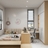 - Đặc biệt, giường ngủ được đặt sát vách với hệ đầu giường thông minh, tạo ra sự liên kết chặt chẽ và khoa học giữa khu vực nghỉ ngơi và làm việc.