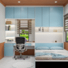 - Tông màu chủ đạo là gỗ sáng tự nhiên kết hợp xám nhạt, tạo nên sự cân bằng nhẹ nhàng, giúp căn phòng luôn sáng sủa và thư giãn.