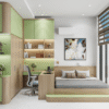 - Tổng thể, thiết kế này không chỉ tối ưu hóa không gian sử dụng mà còn tạo cảm giác dễ thương, an toàn và phù hợp với sở thích của các bé, đồng thời mang lại sự tiện nghi và thẩm mỹ cao cho căn phòng.