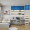 - Không gian được bố trí hài hoà vớ tủ quần áo âm tường thiết kế liền mạch với mảng tường, tối ưu diện tích và tạo cảm giác gọn gàng.
