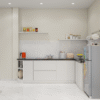 - Phối màu tinh tế: Màu trắng tạo cảm giác mở rộng không gian mang đến một không gian bếp sáng sủa hơn